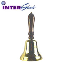 Solid Brass hand bell with wooden handle.